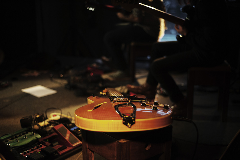 Hélio Morais, João Nogueira e Makoto Yagyu. O ensaio de som da tarde do concerto, na Galeria Zé dos Bois.